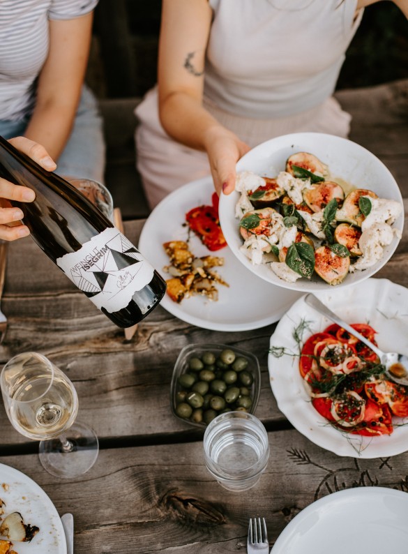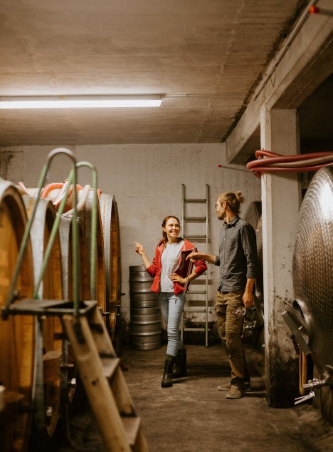 Unsere Weine sollen in erster Linie die Natur widerspiegeln. Durch unterschiedliche Einflüsse, Lagen und auch Erntezeitpunkte werden die Weine dann in verschiedene Linien eingeteilt: die easy drinking (Haus), die Klassiker (Dorf), die Top of the top (Lage) und die etwas „Wilderen“ (Tanz). Alle unsere Weine werden natürlich produziert. Das heißt, sie dürfen sich ganz frei entfalten. Es wird nur unterstützt, nicht verändert, und dann mit Schwefel „haltbar“ gemacht. Dennoch gibt es bei den Isegrim-Weinen eine zusätzliche Linie „Tanz“, die mehr in die Naturweinrichtung geht. Was ist der Unterschied? Gute Frage! Gar nicht mal so viel eigentlich. Die Tanz-Linie erhält noch weniger Schwefel und ist unfiltriert. Sonst bleibt alles gleich.